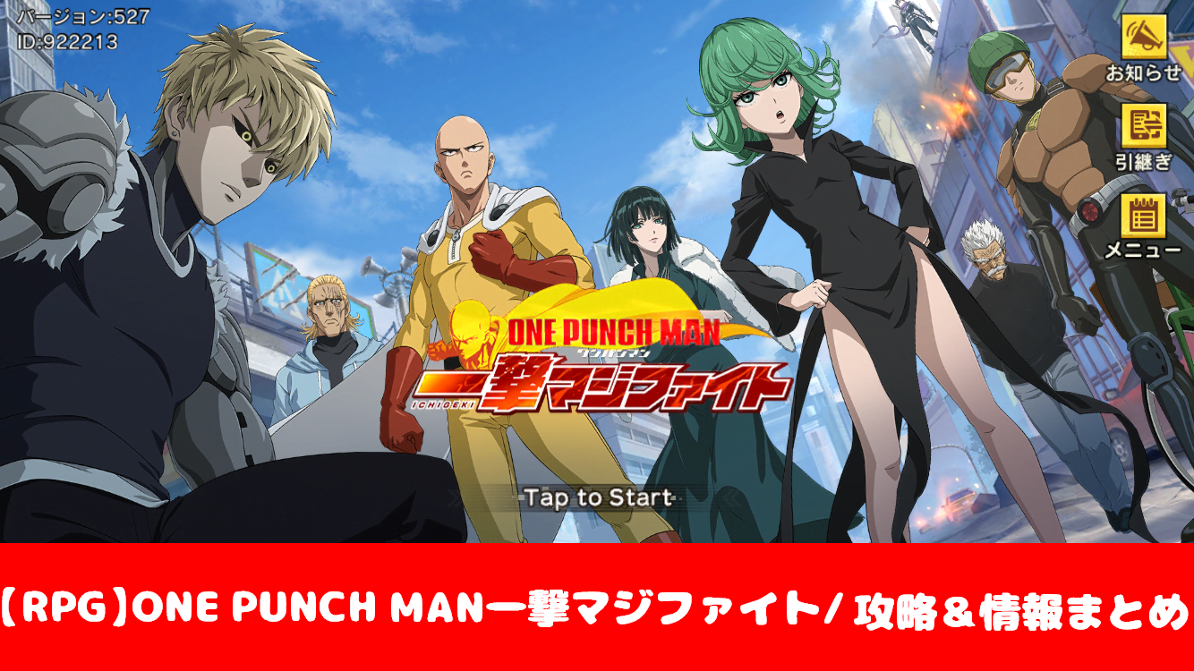 当サイトではその他にも「ONE PUNCH MAN 一撃マジファイト」のリセマラ情報まとめ記事・ガチャ情報まとめ記事を掲載しております。
